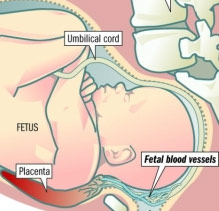 - When the cervix dilates or the membrane rupture, the unprotected vessels can tear, causing rapid fetal haemorrhage.